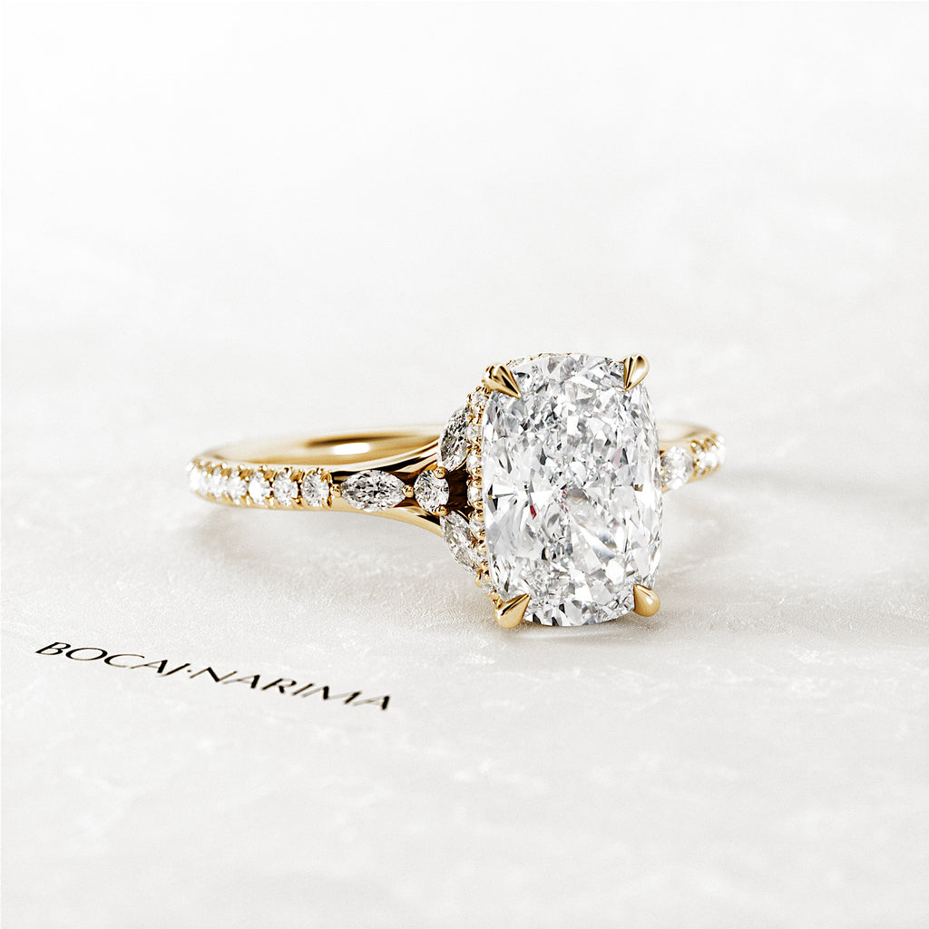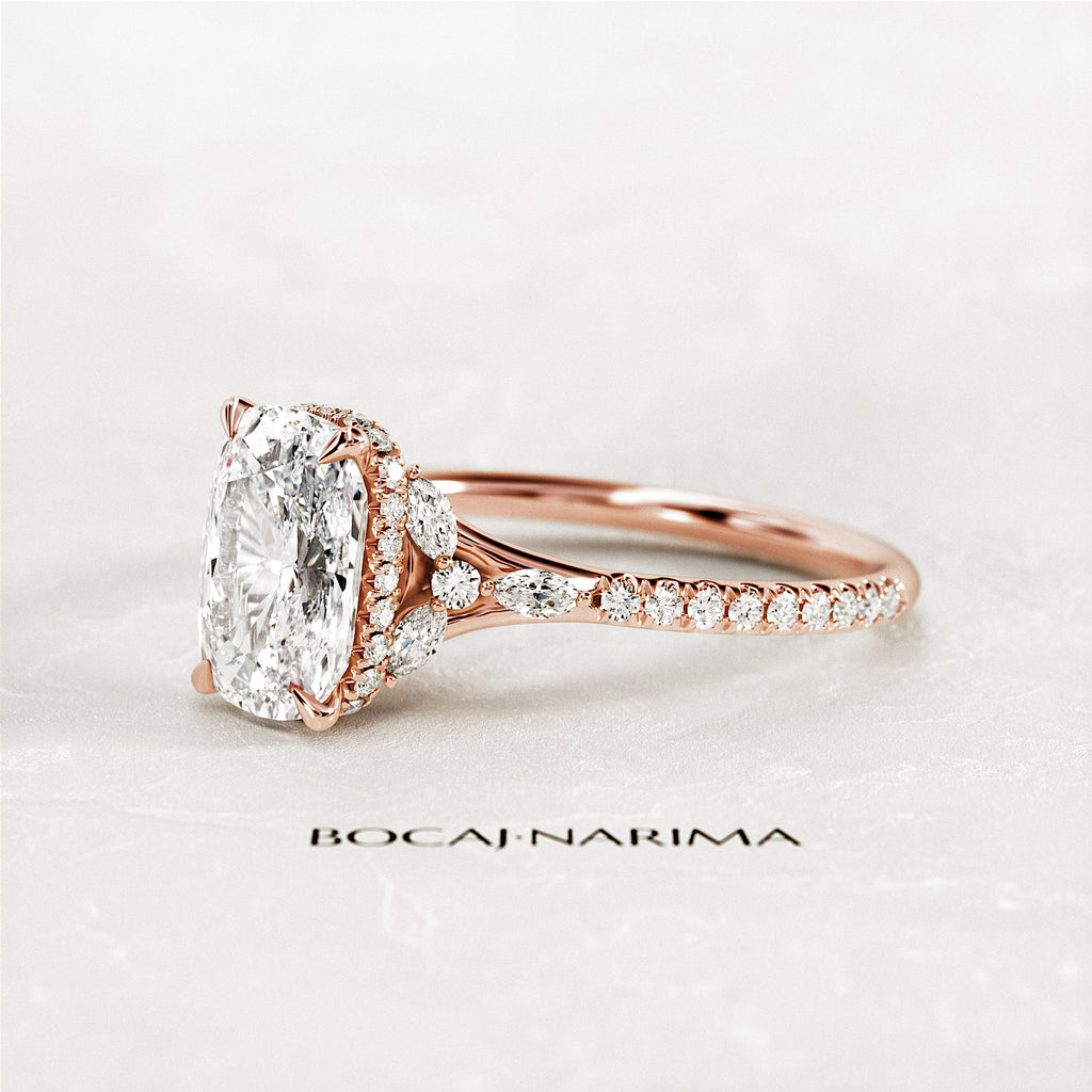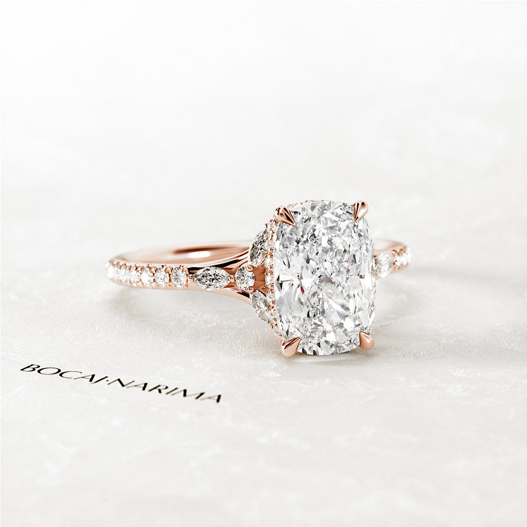 2 Carat Elongated Cushion Lab Grown Diamond Nature Inspired Engagement Ring