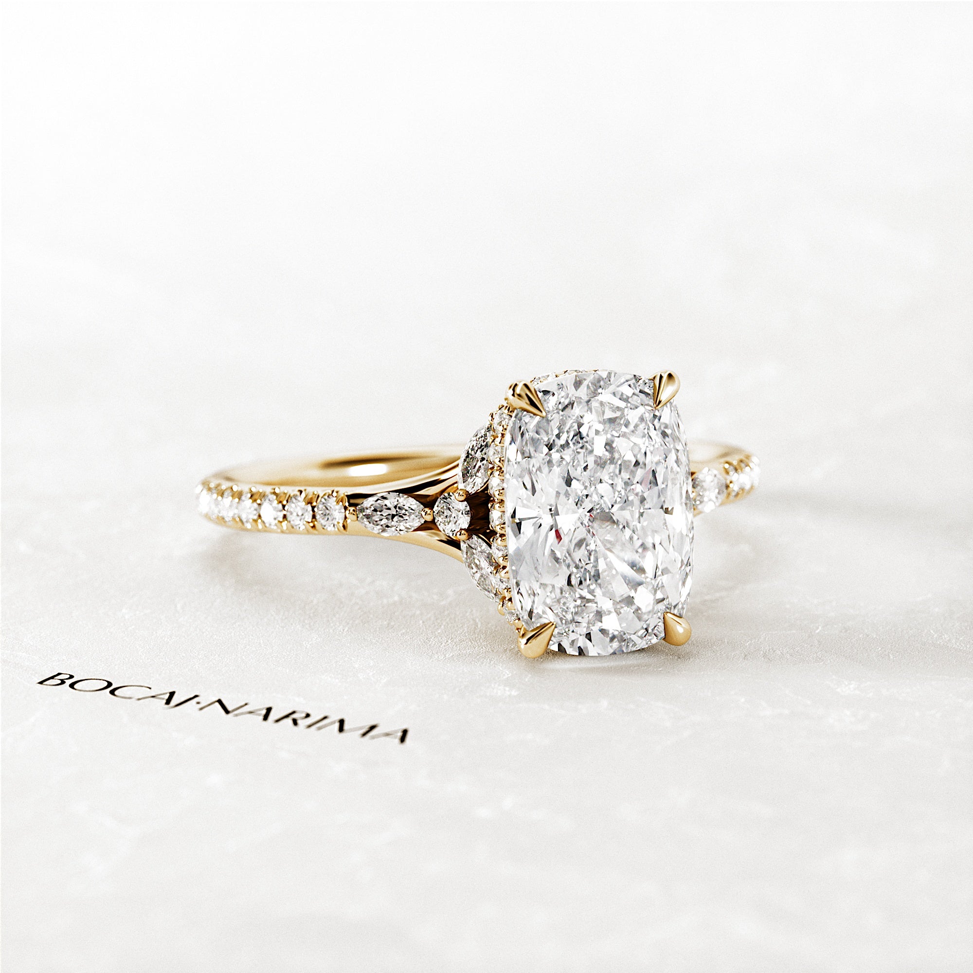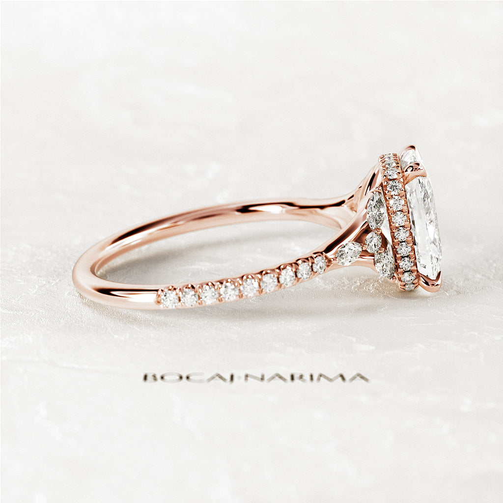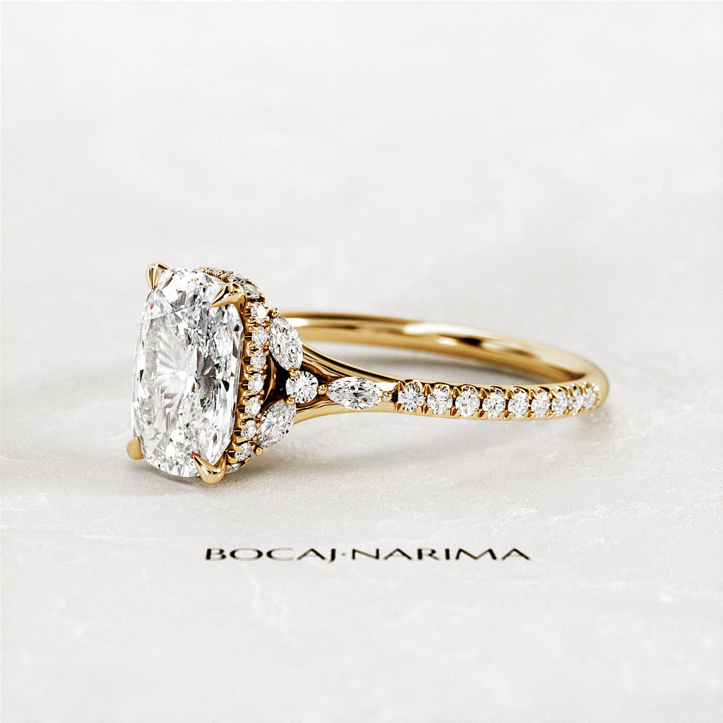 2 Carat Elongated Cushion Lab Grown Diamond Nature Inspired Engagement Ring